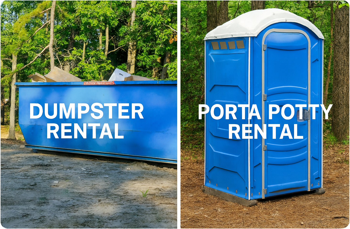 Home cleanouts, yard waste, or garage decluttering—our dumpsters make cleanup easy. We also offer single or multi-unit porta potty rentals for outdoor needs.